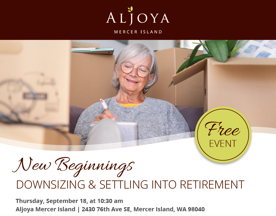 Aljoya Mercer Island 2430 76th Avenue SE, Mercer Island, WaJoin us for an insightful and compassionate presentation on the art of downsizing and embracing a new chapter in retirement. We’ll explore how to thoughtfully let go of cherished, memory-filledMore