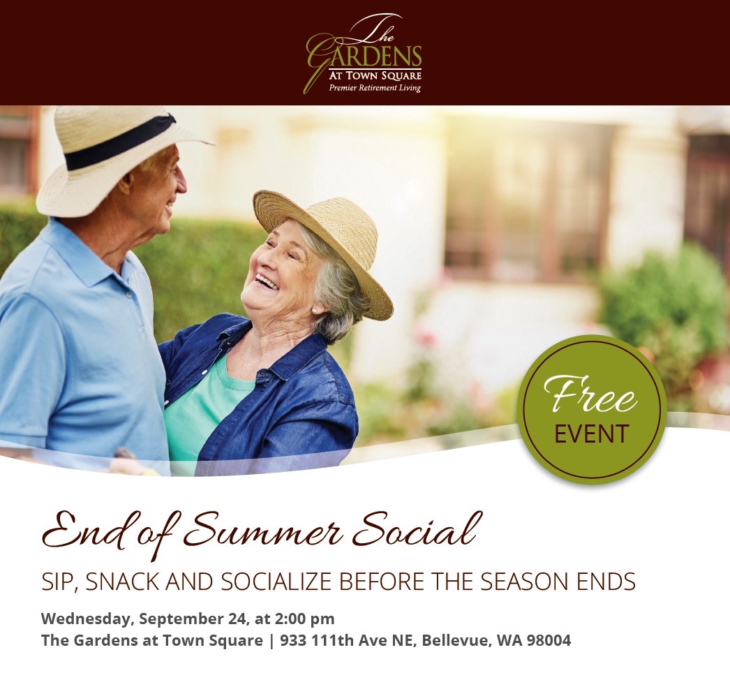 The Gardens at Town Square 933 111th Ave NE, Bellevue, WAAs summer winds down, join us for a relaxed and joyful afternoon at The Gardens at Town Square. This special gathering is a chance to connect with residents, meet newMore