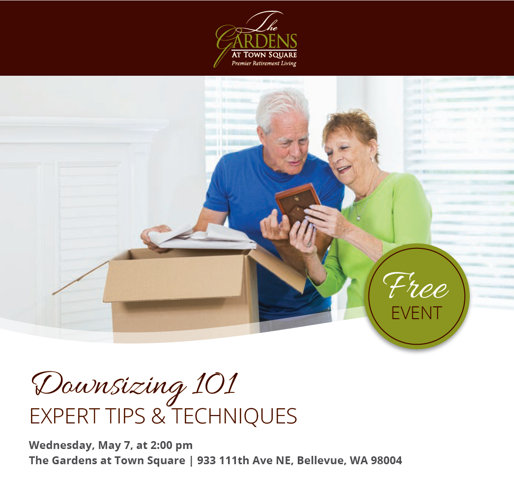 Join us for this fun, informative downsizing workshop. Learn tips and suggestions on what it means to right size, how to begin the process and minimize stress, and what to do with belongings you no longer wish to keep. Complimentary valet parking will be provided for your convenience.