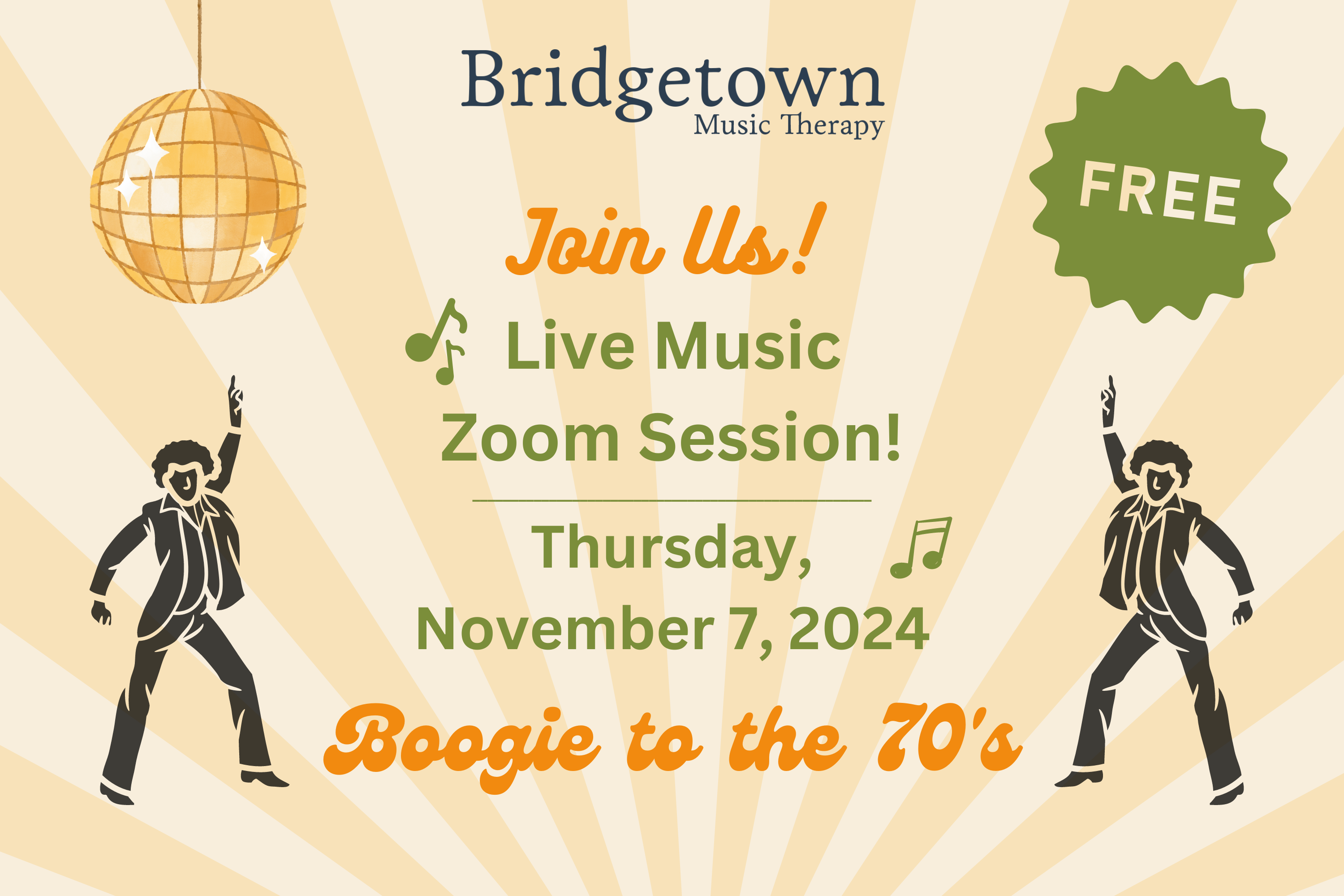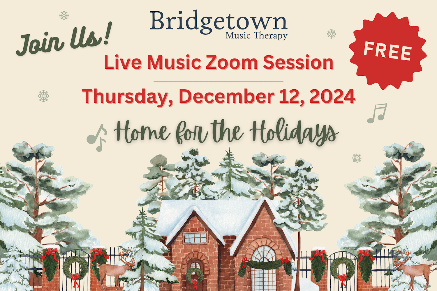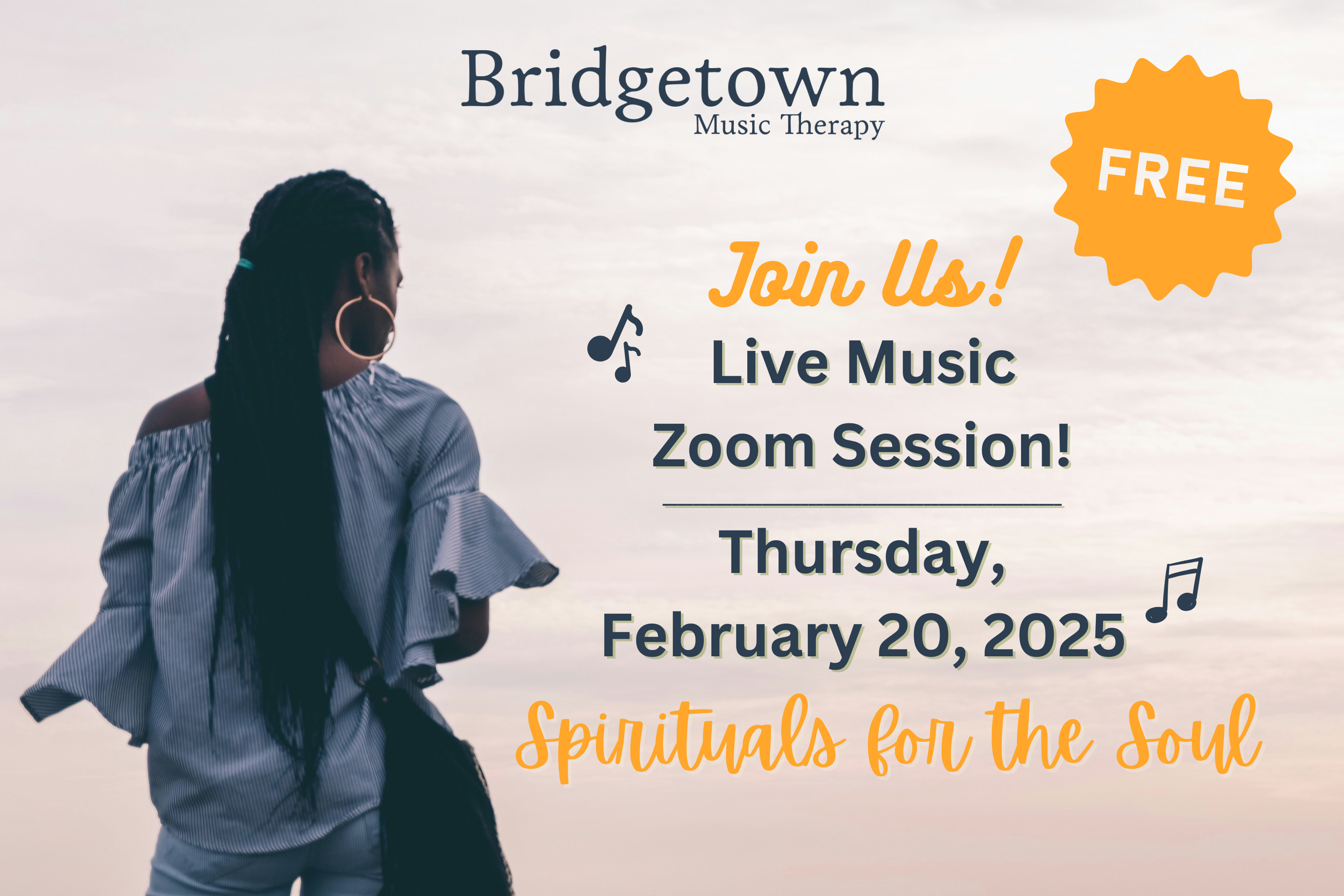 Free Live Music Activity for Older Adults! Join Bridgetown Music Therapy’s upcoming Live Music ZOOM Session, and enjoy an hour of lifelong learning, music, and fun! Register TODAY: https://www.bridgetownmt.com/live-zoom-registration